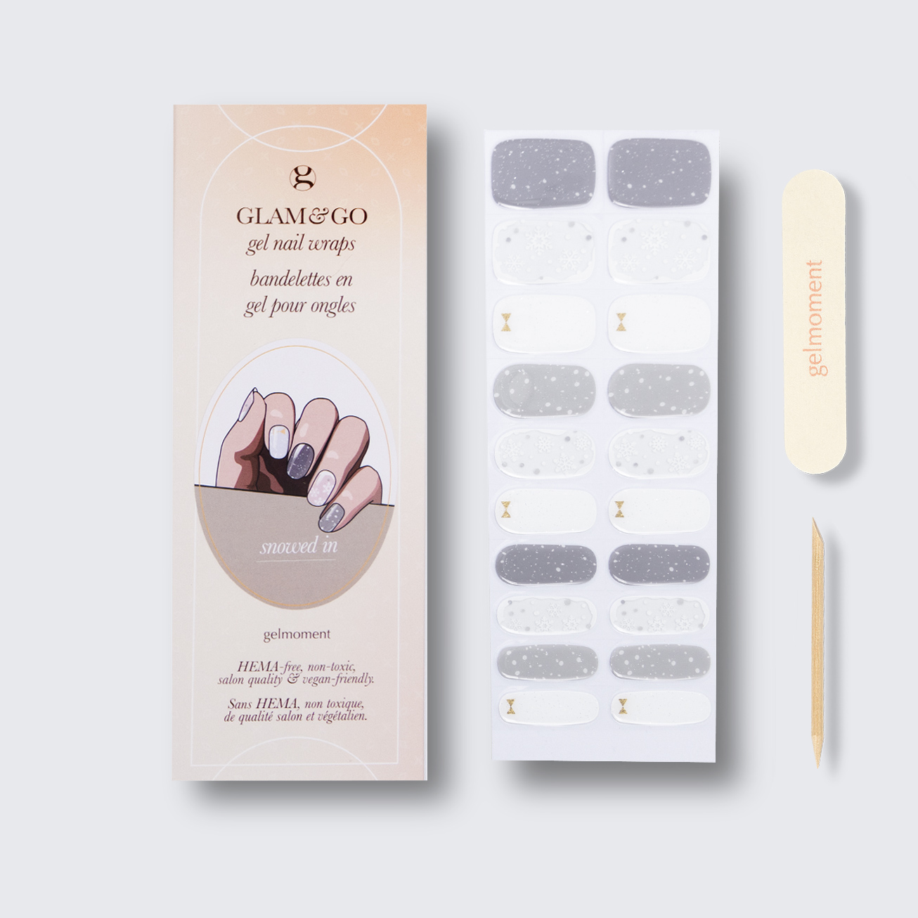 Take a moment to give yourself a head-turning, DIY gelmoment experience in a few easy steps with our GLAM & GO gel nail wraps.